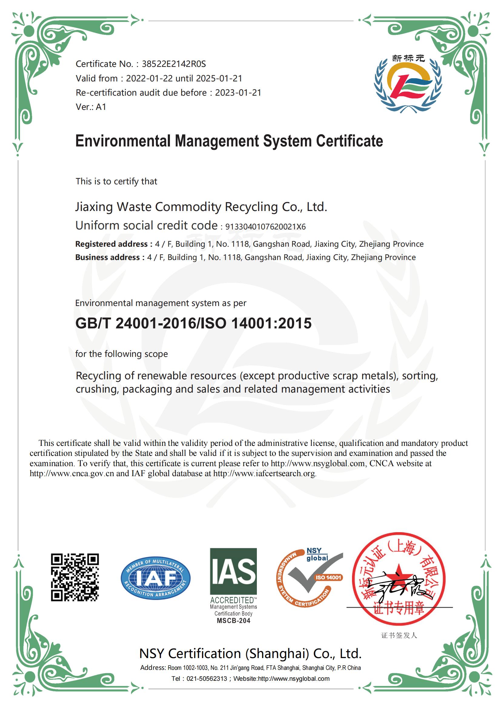 公司名稱:嘉興市廢舊商品回收利用有限公司(秀洲)
